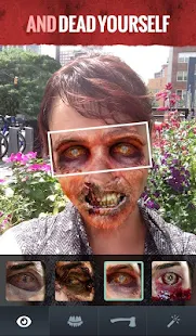 Tire uma foto de si mesmo ou um amigo e, em seguida, editar a sua foto usando os zumbis olhos incrivelmente realistas, bocas e adereços. Compartilhe o seu novo retrato no Facebook, Twitter, ou para a galeria de fotos público Walker.